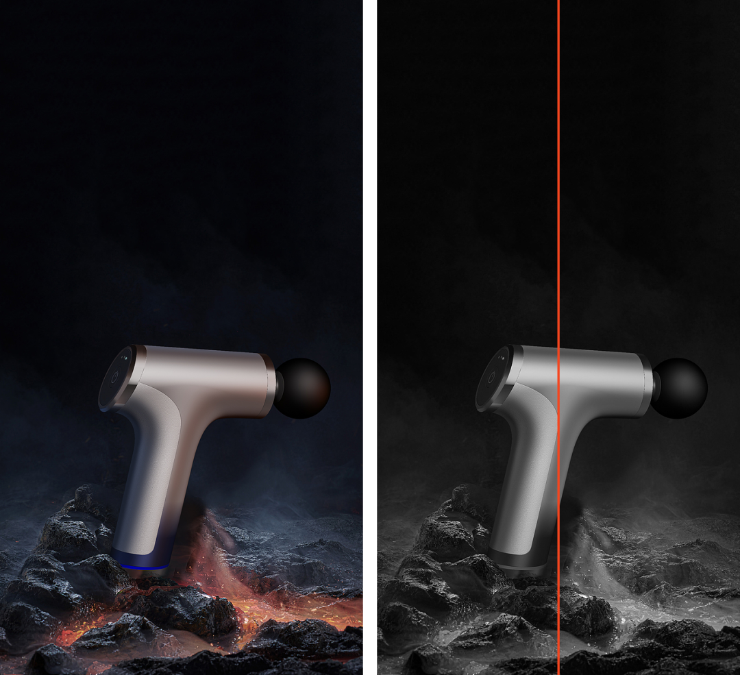 初步的详情页海报构图就出来了,很多人的第一直觉就是居中排版,因为毕竟这么构图整体重心是稳的,比如像下面这样: