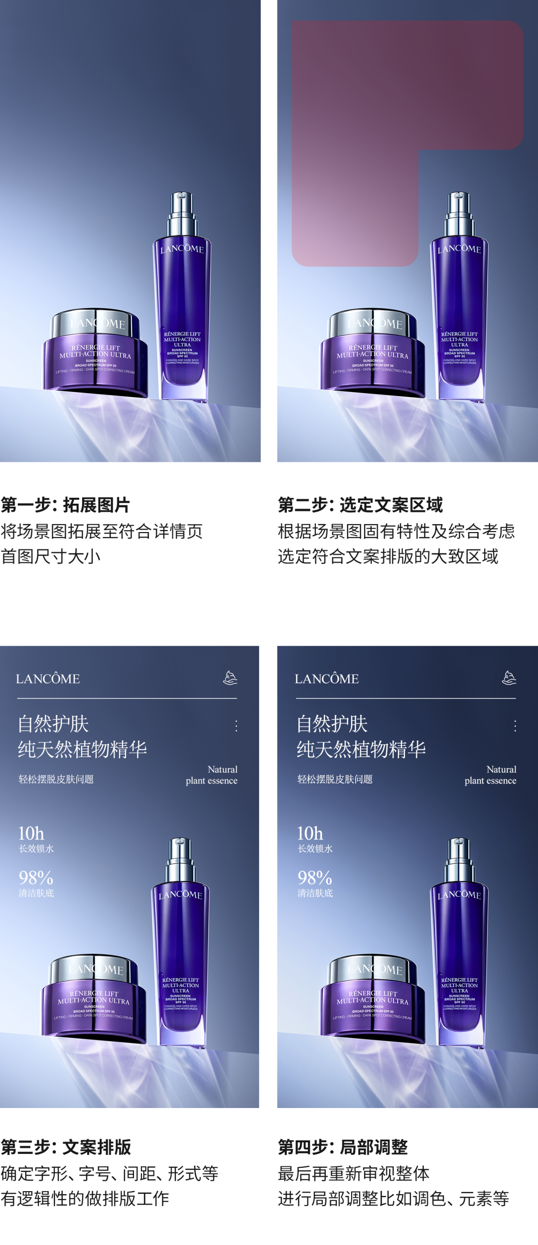 补充:本文以详情页首图排版为切入点,详情页中其他模块同理。