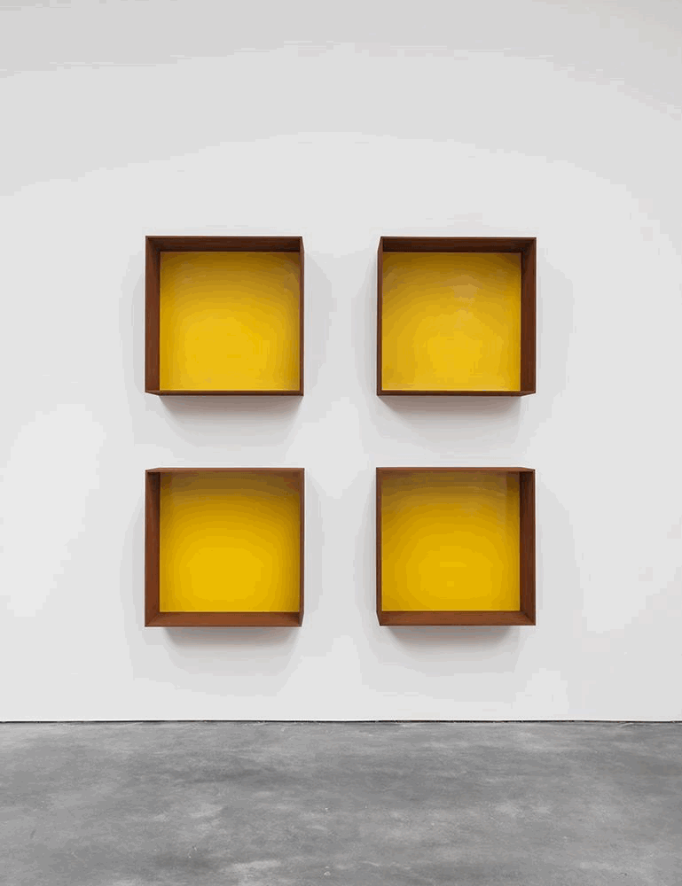 在美国倡导极简主义流派的代表人物Donald Judd,贾德以金属立方为主体的雕塑,成为“极简主义”艺术最具代表性的作品。对象与空间产生令人着迷的互动效果:开放和关闭空面、内部和外部的形式、材质. 光与影的巧妙组合。