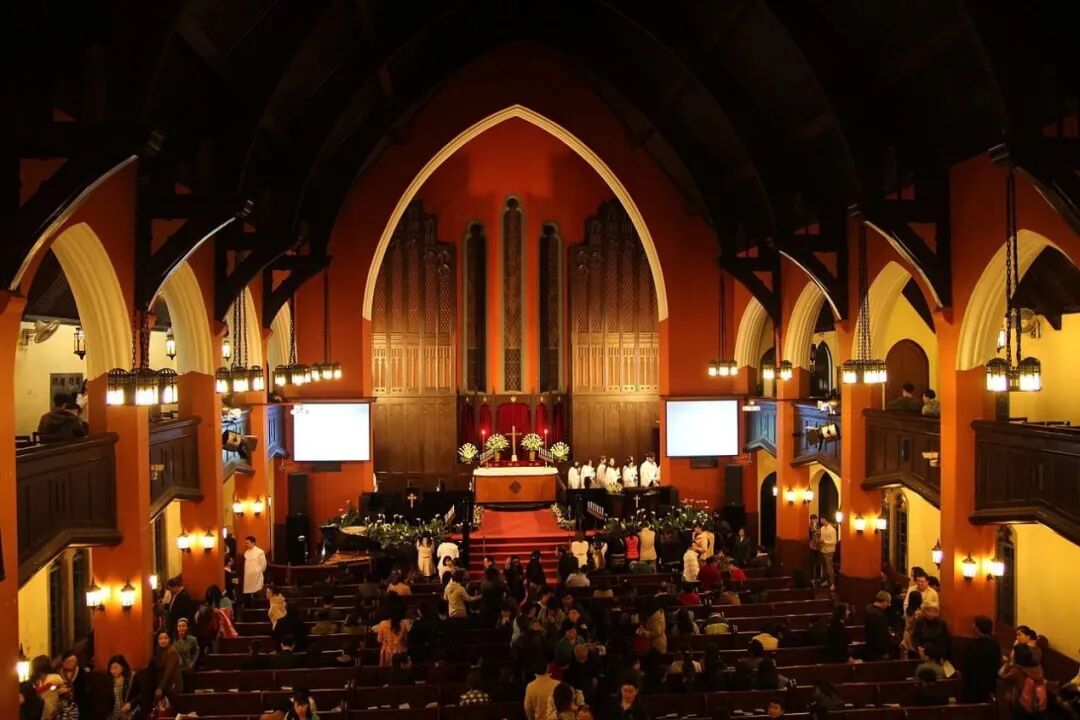 上海国际礼拜堂(新教)内景,无雕像和绘画 © Google