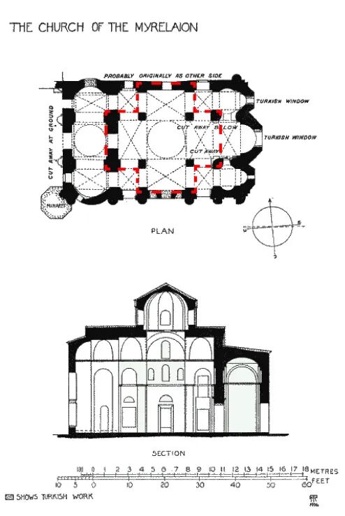 该平面脱胎于巴西里卡式布局,拜占庭教会的宗教仪式对于列队进入教堂的重视,使原本很长的巴西里卡布局被不断缩短。分裂为东正教以后,为了与天主教形成更大的差异,宗教仪式进一步变化:原本从大门进入的列队现在改为从中间两侧进入