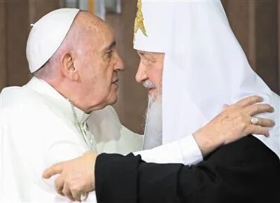 罗马天主教宗方济各(左)与俄罗斯东正教主教长会晤(右) © Google