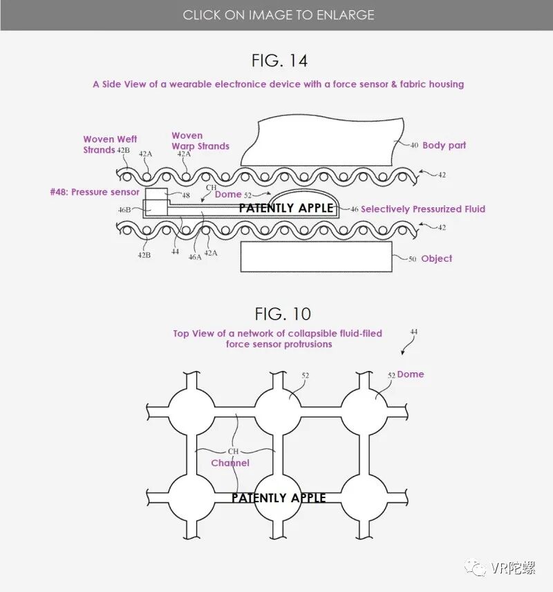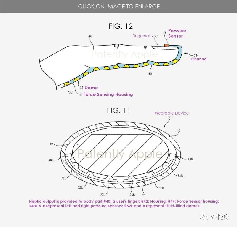 苹果公司的专利图1是一个带有电子设备的说明性系统的示意图;图2-5说明了力感应装置可以设计为手指/手套、腕带或鞋类。