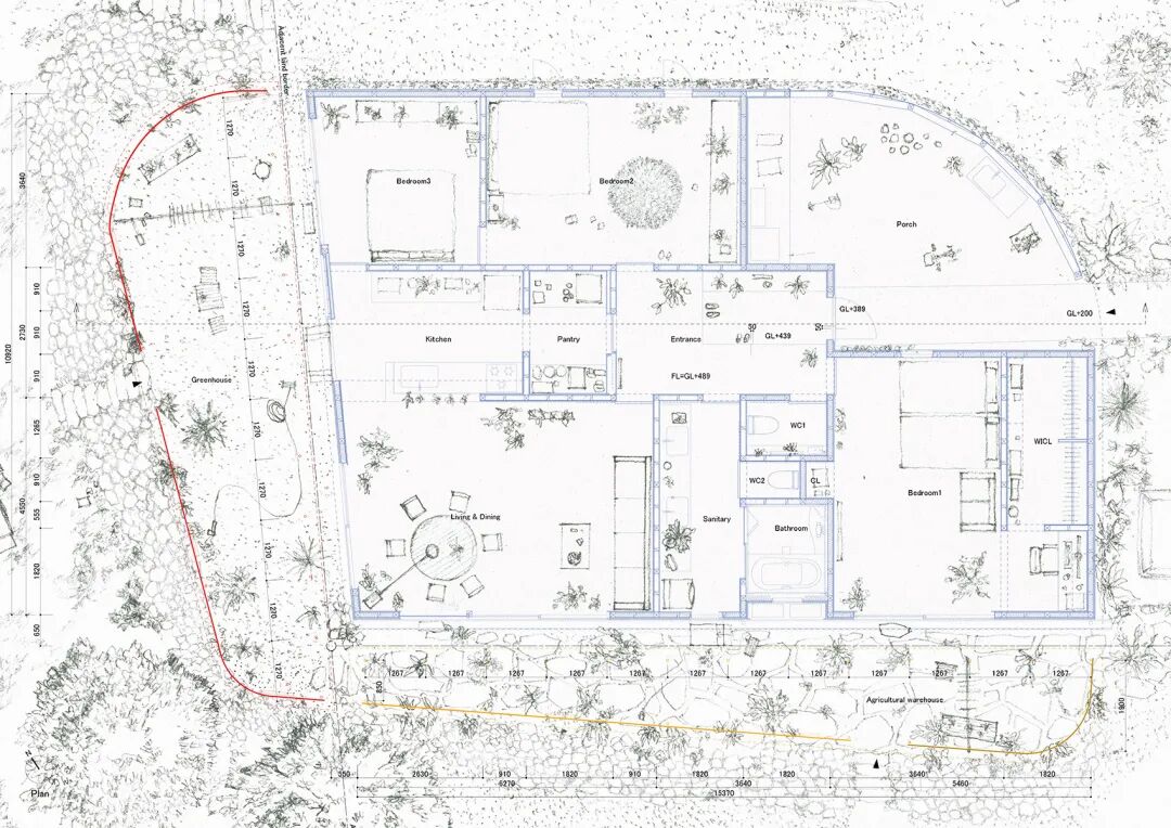 今天推荐的案例是一栋166㎡的日本乡村住宅,屋主是一位农场主。住宅可分为三个不同的体量,由三种不同材料的屋顶进行区分,没有复杂的空间,体现着生活与住宅就该如此简单。