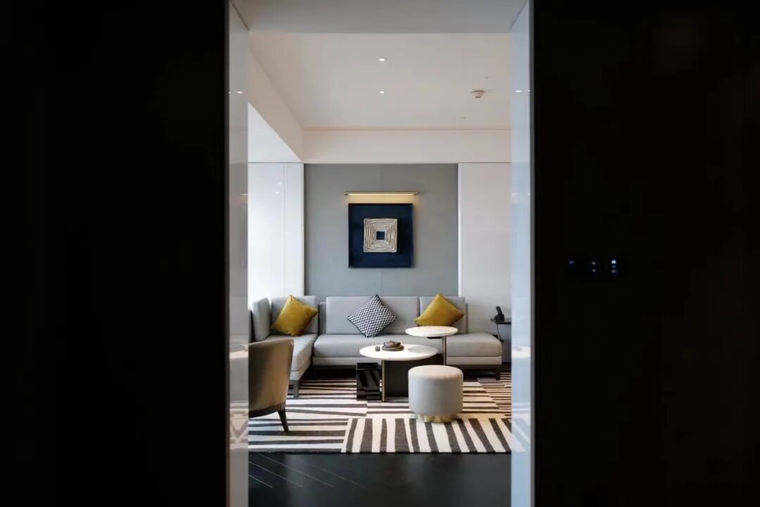 套房运用一间宽大的门厅,将起居室和睡房分置空间两翼,将起居社交空间和私密休憩空间有致分隔。俨然一座充满深邃感与层次感的平层公寓。套房浴室所配的娇兰“帝王之水”香调备品更是佐浴绝配,其动人的香调足以驱走都市的纷扰、旅途的疲惫和日常的重压。
