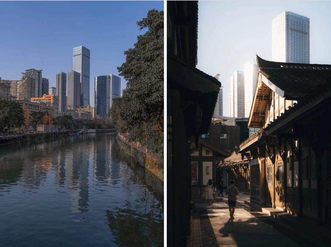 随着时代几经更迭,东大街除了延续成都城中重要主干道使命的同时,也交织着闪亮玻璃幕围裹的金融建筑、透着柔美光晕的80年代民宅、时髦精致的英式理发店、飘香四溢的手冲咖啡馆等。现代大都会的摩登磅礴和城中村落般的恬静清雅有致交融,尽情展现多元、包容、澎湃感、烟火气的各自神韵与魅力。