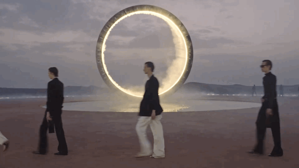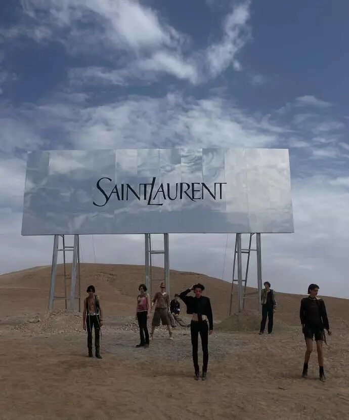 本季圣罗兰男装大秀的秀场交由伦敦艺术家及舞台设计师 Es Devlin 打造,在阿加菲沙漠中部呈现了一个令人敬畏的场景,隐喻着生命神秘且迷人的复杂性,成为了本场秀的一大讨论焦点。