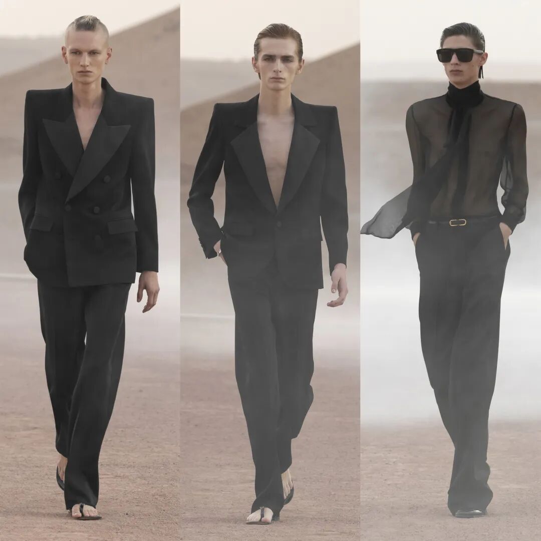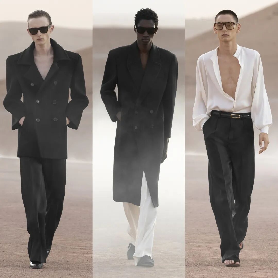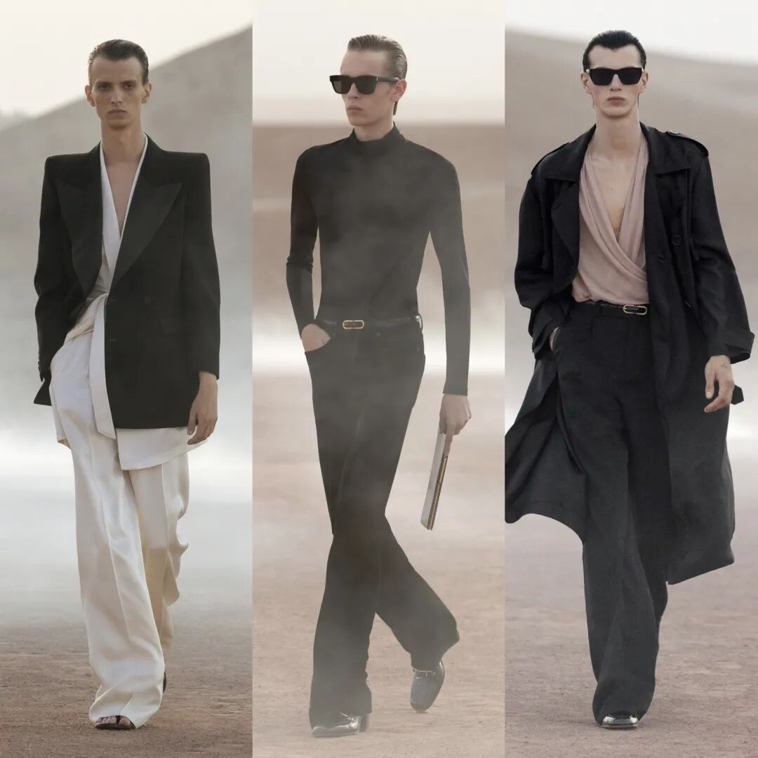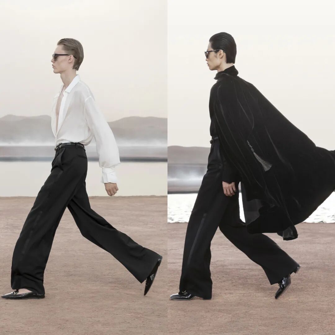 SAINT LAURENT 圣罗兰 2023 春夏男装秀今日凌晨重返圣罗兰先生灵感之地,于摩洛哥马拉喀什追溯灵感渊源,在阿加菲沙漠中呈现壮丽景致与新季男装系列。