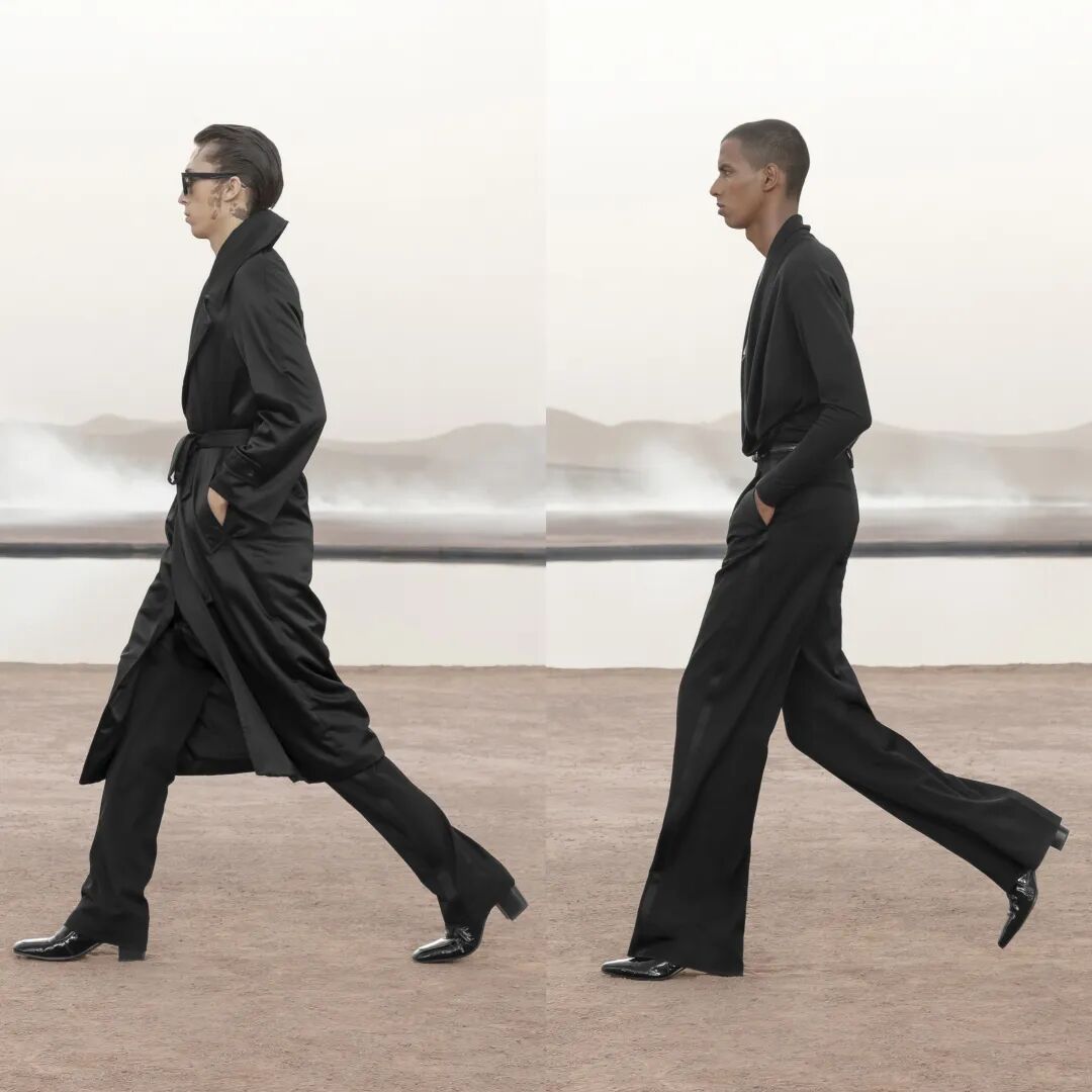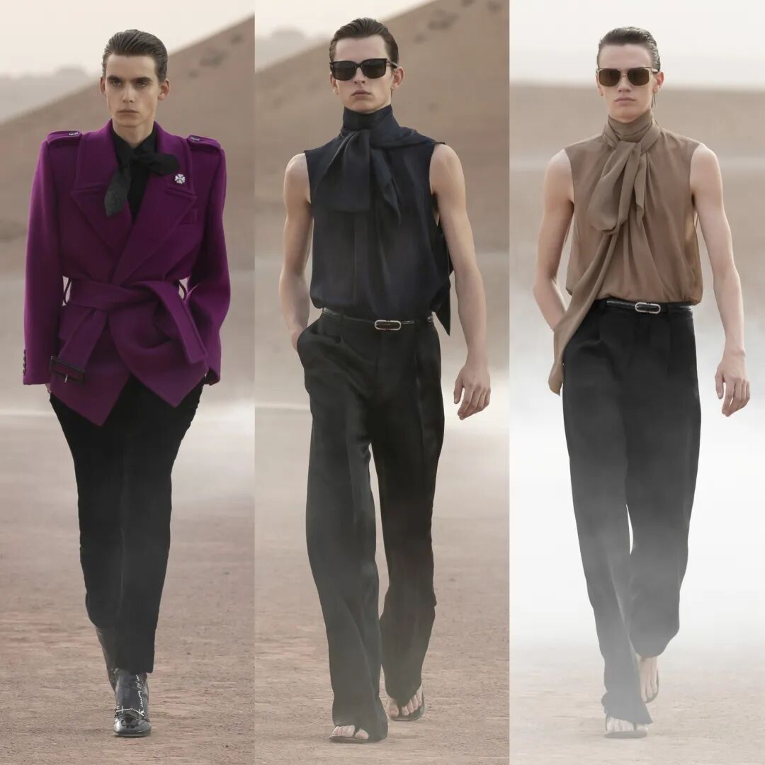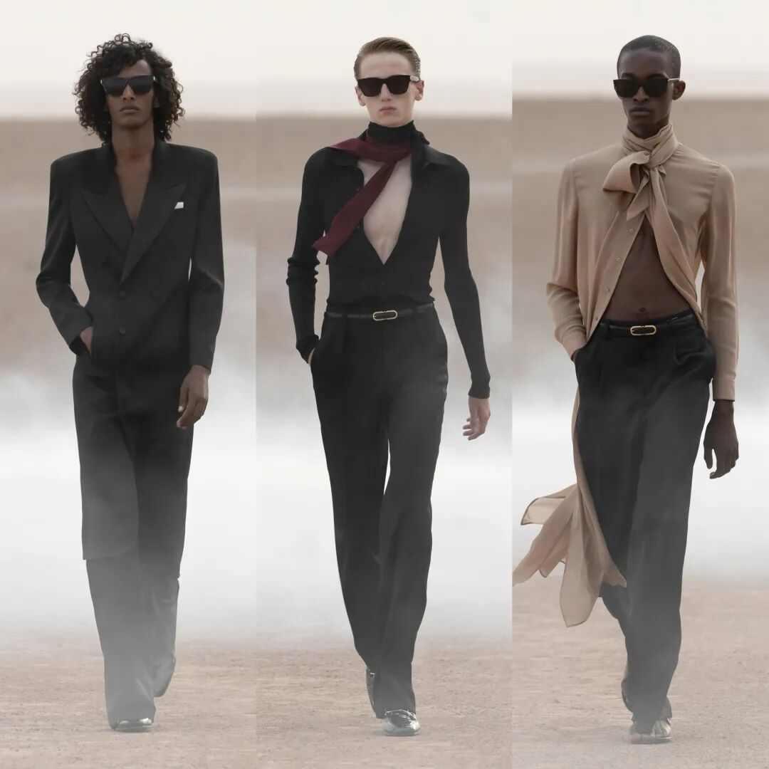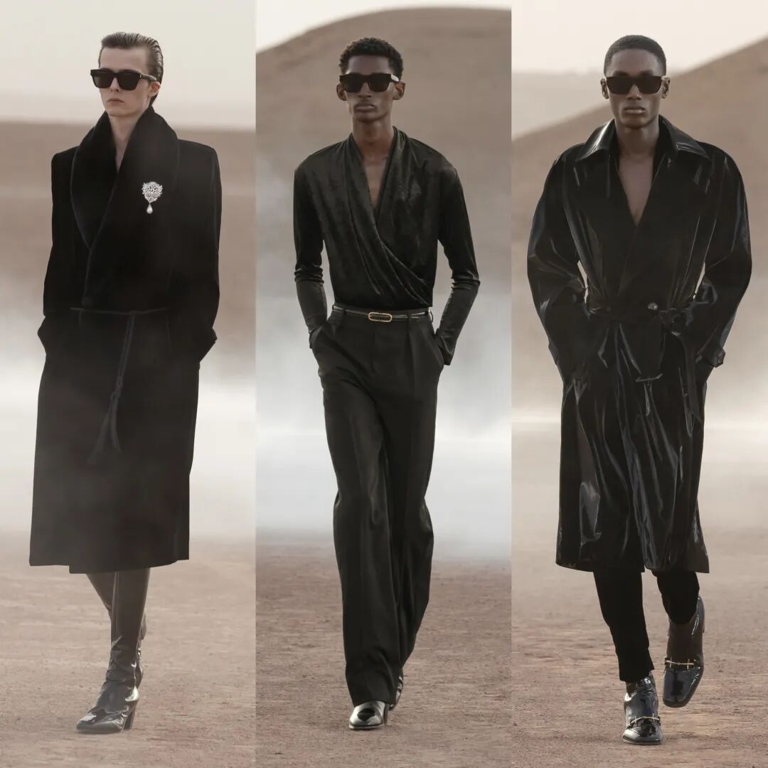 SAINT LAURENT 圣罗兰 2023 春夏男装秀今日凌晨重返圣罗兰先生灵感之地,于摩洛哥马拉喀什追溯灵感渊源,在阿加菲沙漠中呈现壮丽景致与新季男装系列。