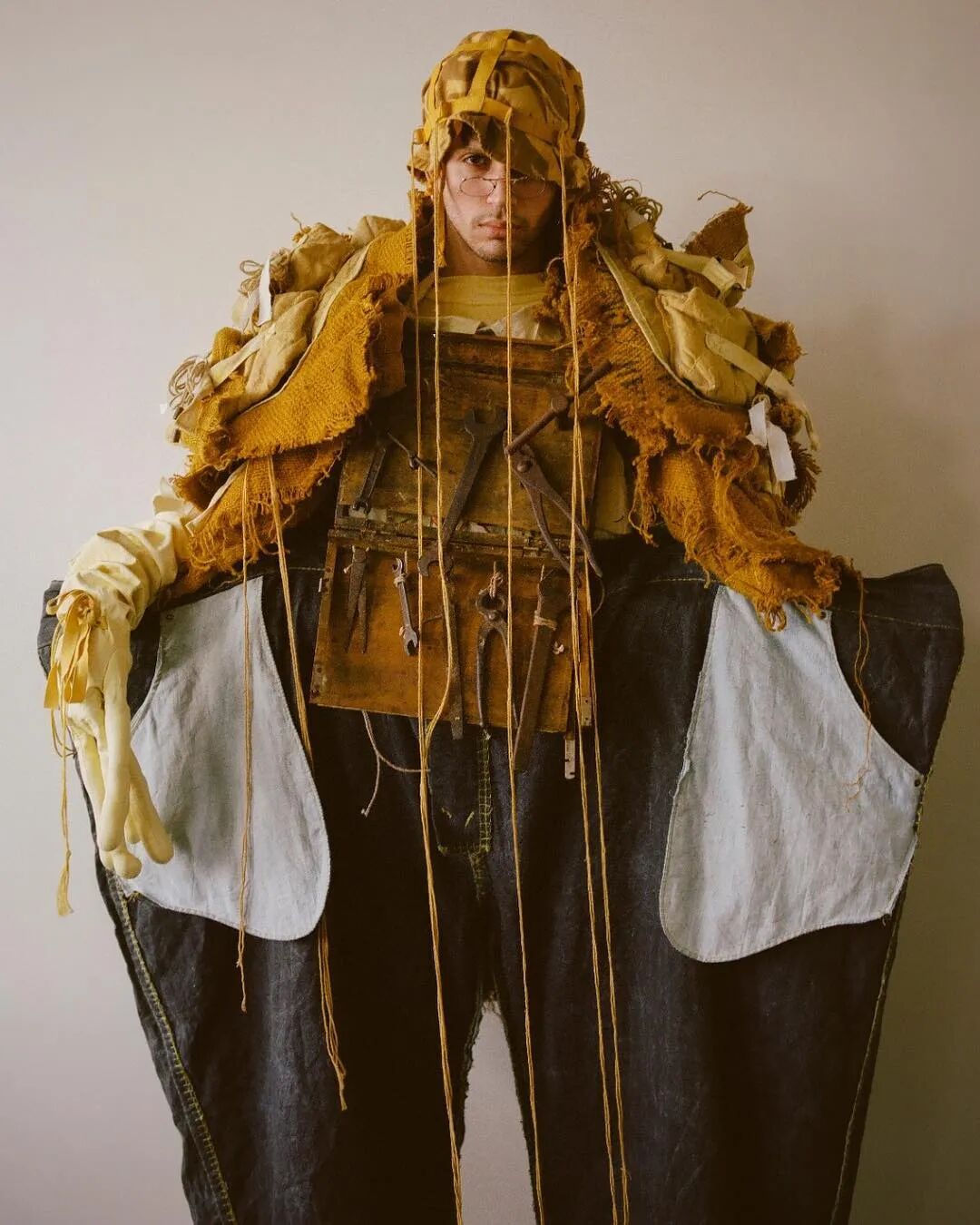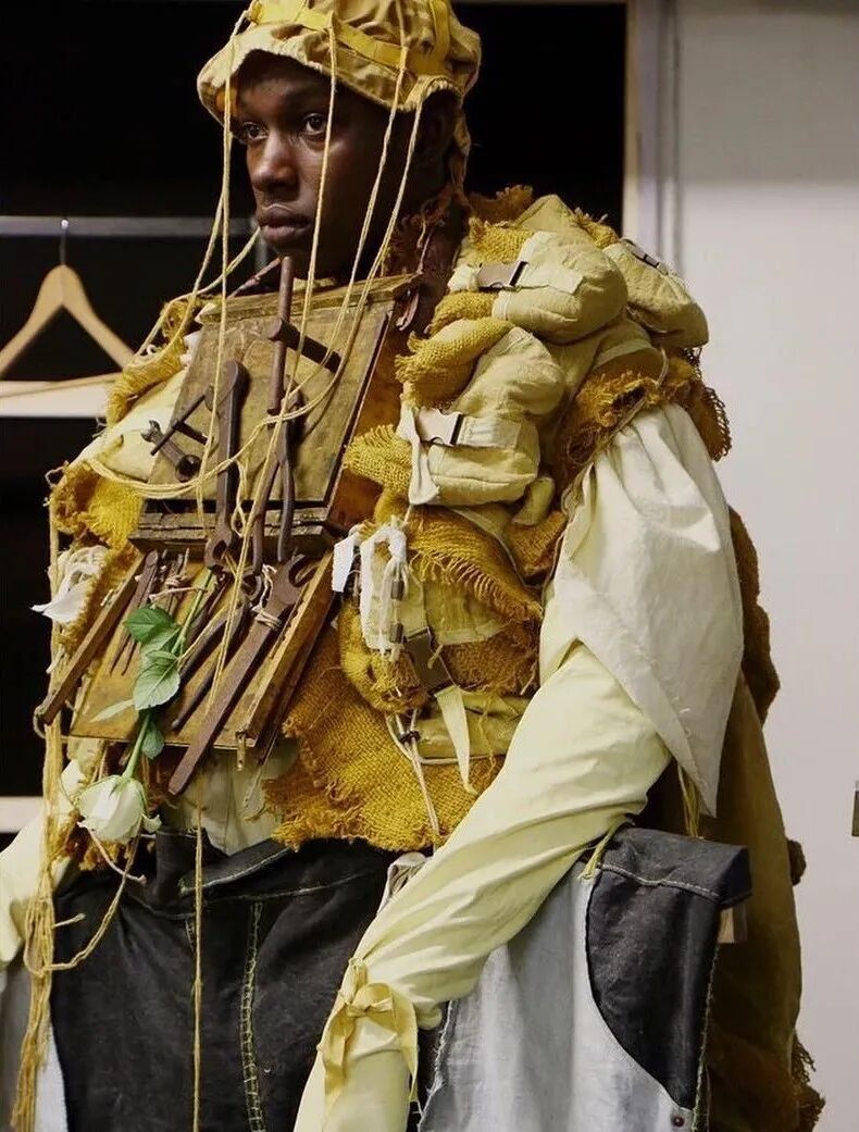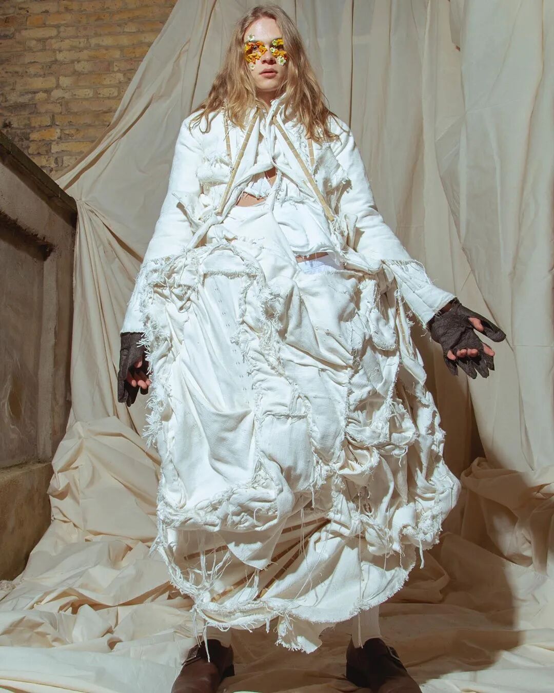 有趣的是,在对面料的加工过程里,Paolo Carzana加入了许多有助于舒缓肌肤和焕发精神的草药,让穿着者更为贴近大自然的气息。他用一段简洁明了的话来形容此次的创作心得:"一场朝圣之旅,穿越黑暗和痛苦,进入光明与希望"。