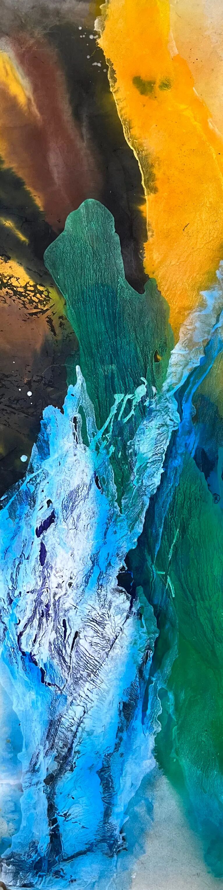 特别是“正是二十多年不带功利目的的自由表达……”这段话让我感慨系之,我仿佛一直生活在自己的梦境里,为那西西弗西的神话而日夜兼程,在我“邂逅”抽象水墨(包括山水画)之前就有了业内人士感到的“不可思议”,这是独特艺术历程的生命体验与触摸,是非同凡响的人生“沉淀”,他见证了“抽象水墨画家郑忠”之前的“版画家郑忠”,而版画家之前的郑忠又脱胎于“工程师”“发明家”“设计师”郑忠,但此时的郑忠艺术受“潜水员郑忠”的渲染是默默地,间接的,到了抽象水墨画家之后,二、三十年前受天风海水的熏陶与海洋深处的洗礼而直接彰显出艺术家郑忠经历坎坷、波澜壮阔、汹涌澎湃的生命底色。他当时把握的相当准确!
