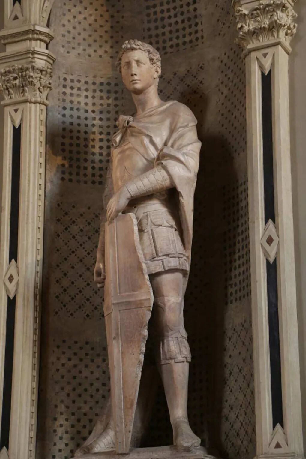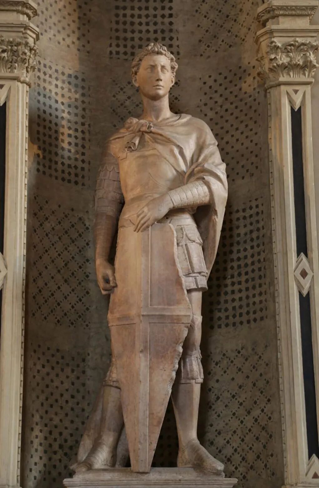 大家好!今天给大家介绍由意大利文艺复兴初期的雕塑大师多纳泰罗于1415-1417年间创作的大理石雕像《圣乔治》,原作收藏于意大利佛罗伦萨国立巴杰罗美术馆,并在奥尔圣米凯尔教堂陈列着复制品。