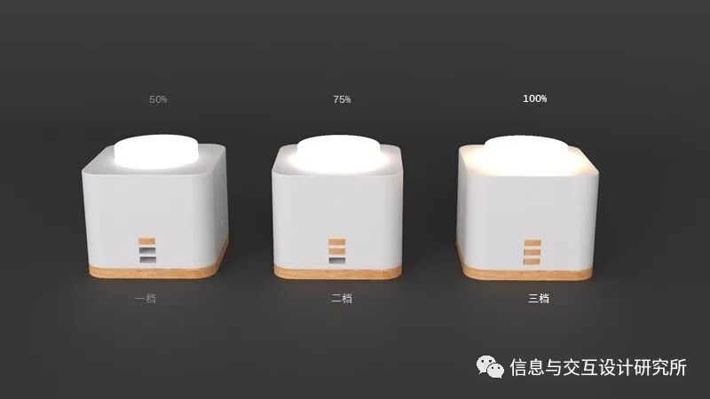 通过灶台与现代灯具结合,让灶台文化通过一种新的方式出现在人们生活当中,通过新的交互方式,让灯具也更具趣味性,给生活带来更多的乐趣。该产品通过增加木条来控制亮度,放入一根木条为50%的亮度、放入两根木条为75%的亮度、放入三根木条为100%的亮度。该产品像灶台一样,柴火越多,温度越高——木条越多灯光越亮。