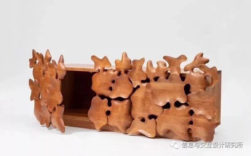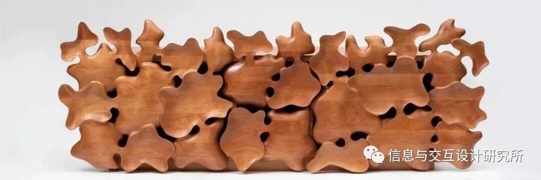 韩国设计师 kim yun-hwan 设计并制作出一个手工雕刻的家具作品系列,由许多不相同的有机木块形态组合而成。