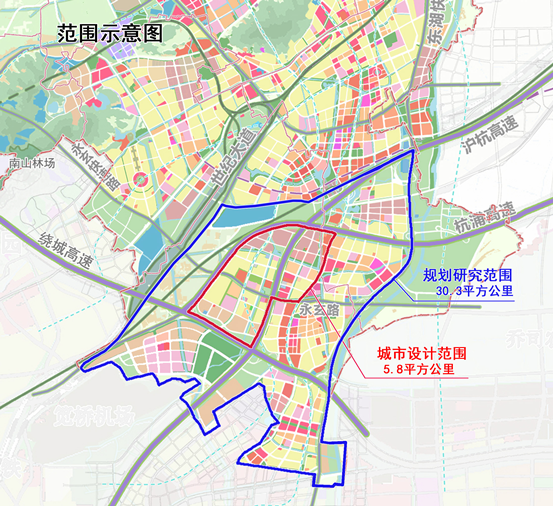 规划研究范围:约30.3平方公里;城市设计范围:约5.80平方公里;概念建筑设计范围:位置自选,面积不超过50公顷。