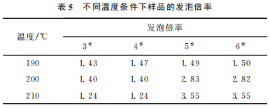 表5为不同温度条件下样品的发泡倍率。由表可以看出,温度不同条件下,生物基PVC发泡膜与石油基PVC发泡膜的发泡倍率基本相同,但化学发泡膜的发泡倍率明显大于物理发泡膜。从发泡性能看,生物基PVC糊树脂可以取代石油基PVC糊树脂。
