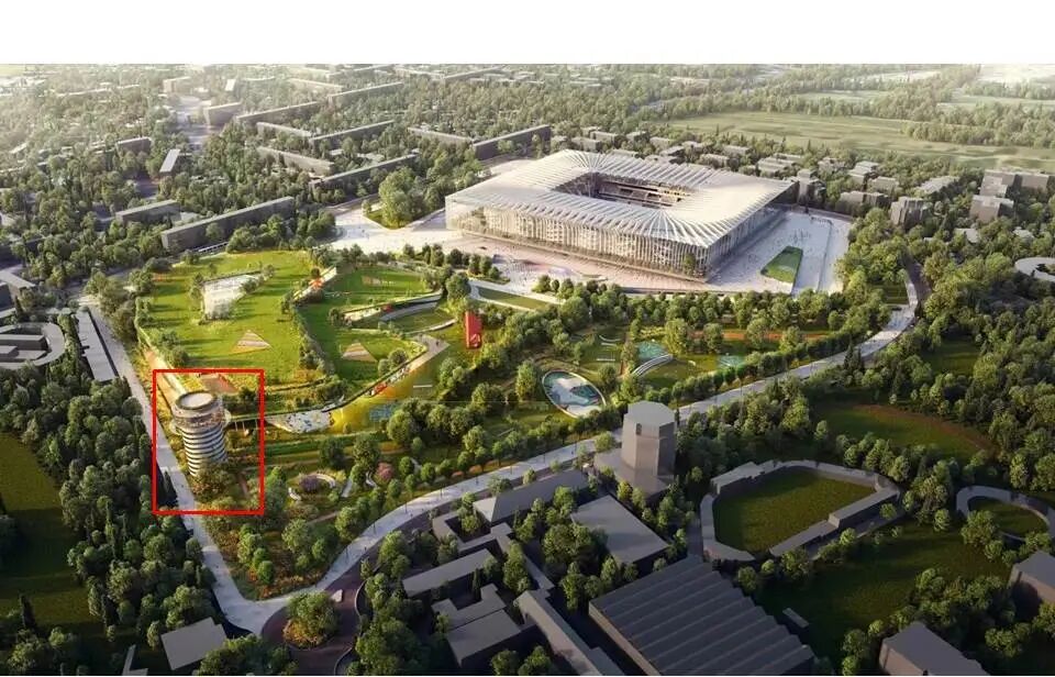 冬奥会结束后,新球场建成,圣西罗将被拆除用作公园绿地。此前Populous的竞赛方案中保留了圣西罗的一座塔楼(图中红框),但2022年10月俱乐部提交的技术报告显示,圣西罗将被全部拆除。曾经的足球圣殿圣西罗将永远成为人们记忆中的符号。取而代之的将是原址配置一座三层建筑,包含商业、娱乐和体育功能商业建筑,其余用地则恢复为公园绿地,配备游戏娱乐和运动功能。因为最终方案还在制定中,所以新球场到底长什么样还蒙着一层神秘的面纱,等待最终方案的公布。