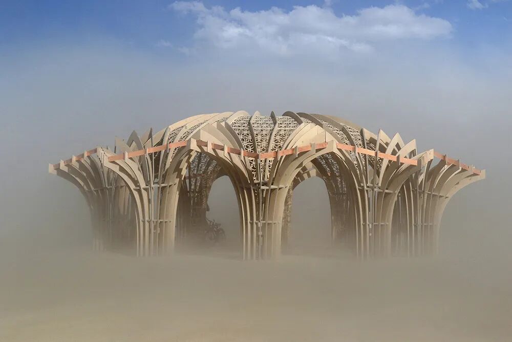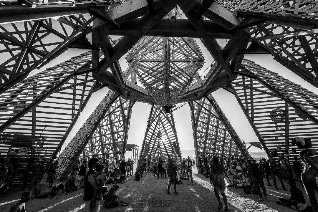 极短的使用时长完全释放了设计师们的野性,建筑与装置的界限被无限模糊。火人节的建筑在沙漠中被抽象为一个概念、一句歌词、一行诗,甚至一个音符。