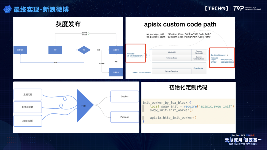 新浪微博原架构痛点是升级步骤长、对服务进行增、删、改或跟踪问题时,不够灵活且难以排查问题。通过迁移到APISIX,借助全动态、高性能等特性,加上定制化的开发,深度融合进入了新浪微博的业务系统中。