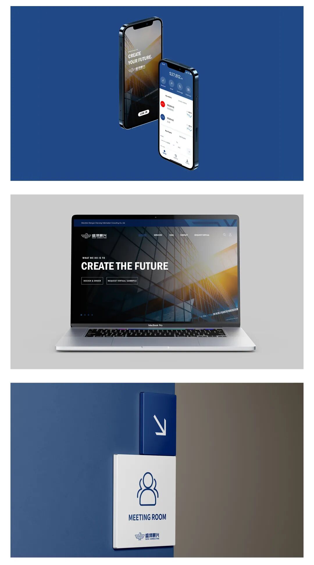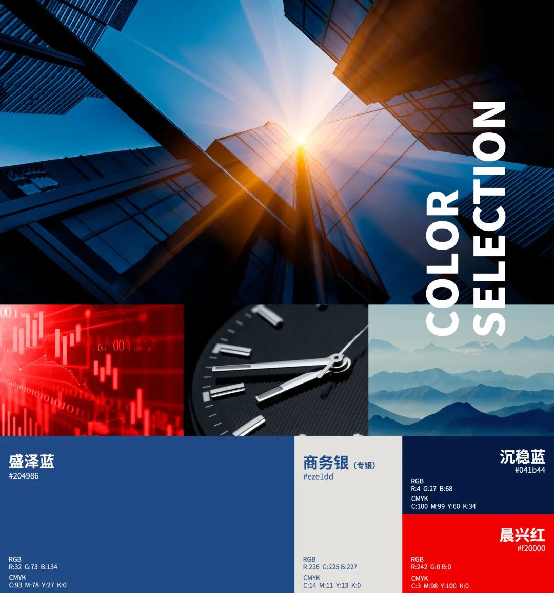 盛泽蓝主色调,以商务银、晨兴红与沉稳蓝辅助色。