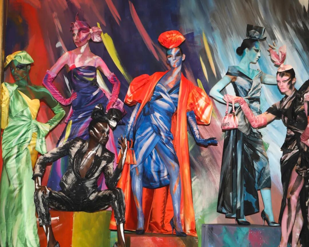 Moschino 2023春夏男装系列,Jeremy Scott再一次将涂鸦印花带到男装设计之中,用油画的笔触将衣服轮廓在面料上勾勒出来,宽松的廓形和利落的剪裁,让本季趣味横生之外,还颇有艺术氛围。