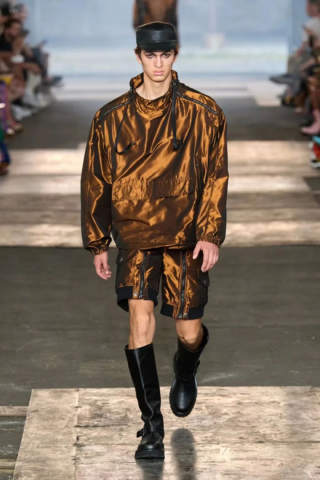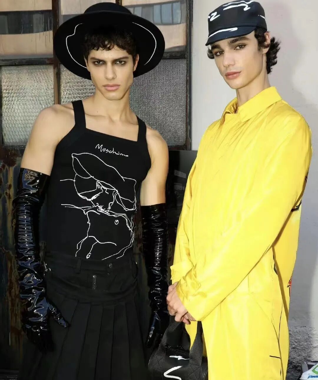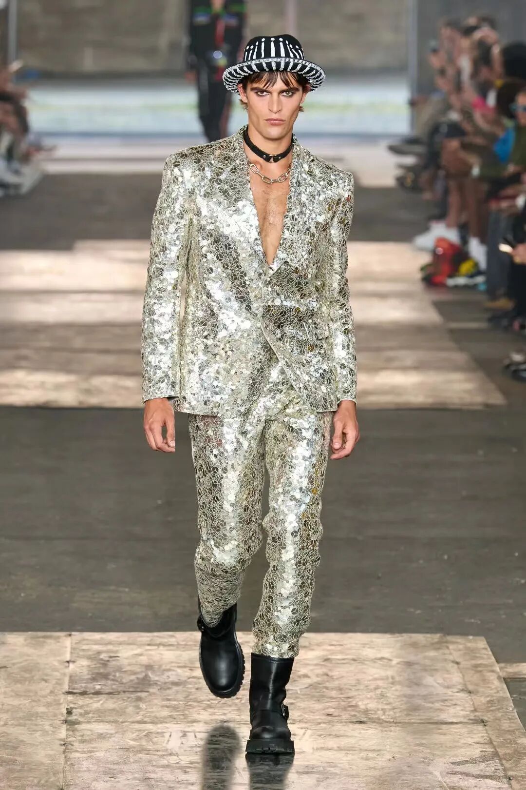 Moschino 2023春夏男装系列,Jeremy Scott再一次将涂鸦印花带到男装设计之中,用油画的笔触将衣服轮廓在面料上勾勒出来,宽松的廓形和利落的剪裁,让本季趣味横生之外,还颇有艺术氛围。