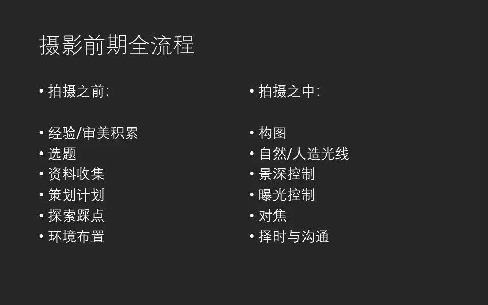经常在发图的时候,我们都会看到各种各样关于摄影前期的问题,比如照片是用什么相机拍的,曝光参数是多少等等。但这些其实只是摄影前期的一小部分。