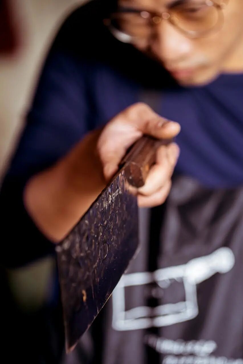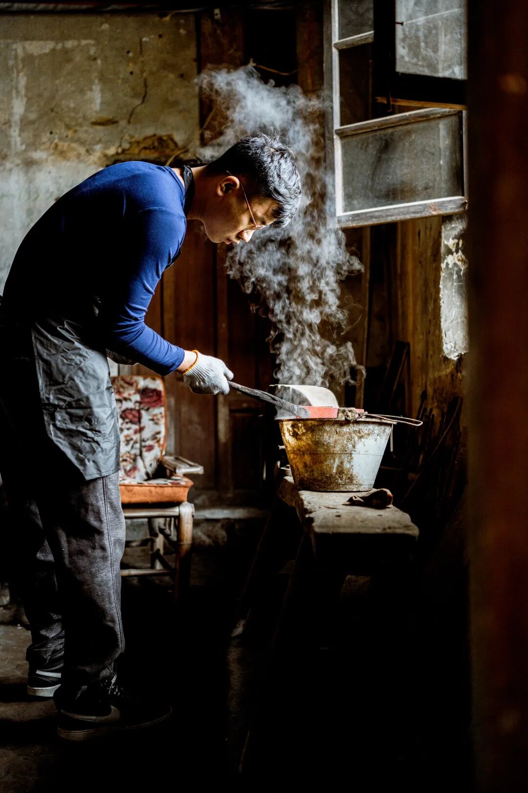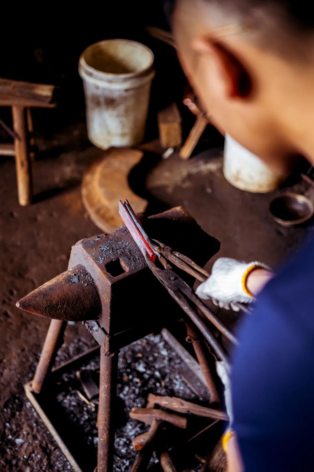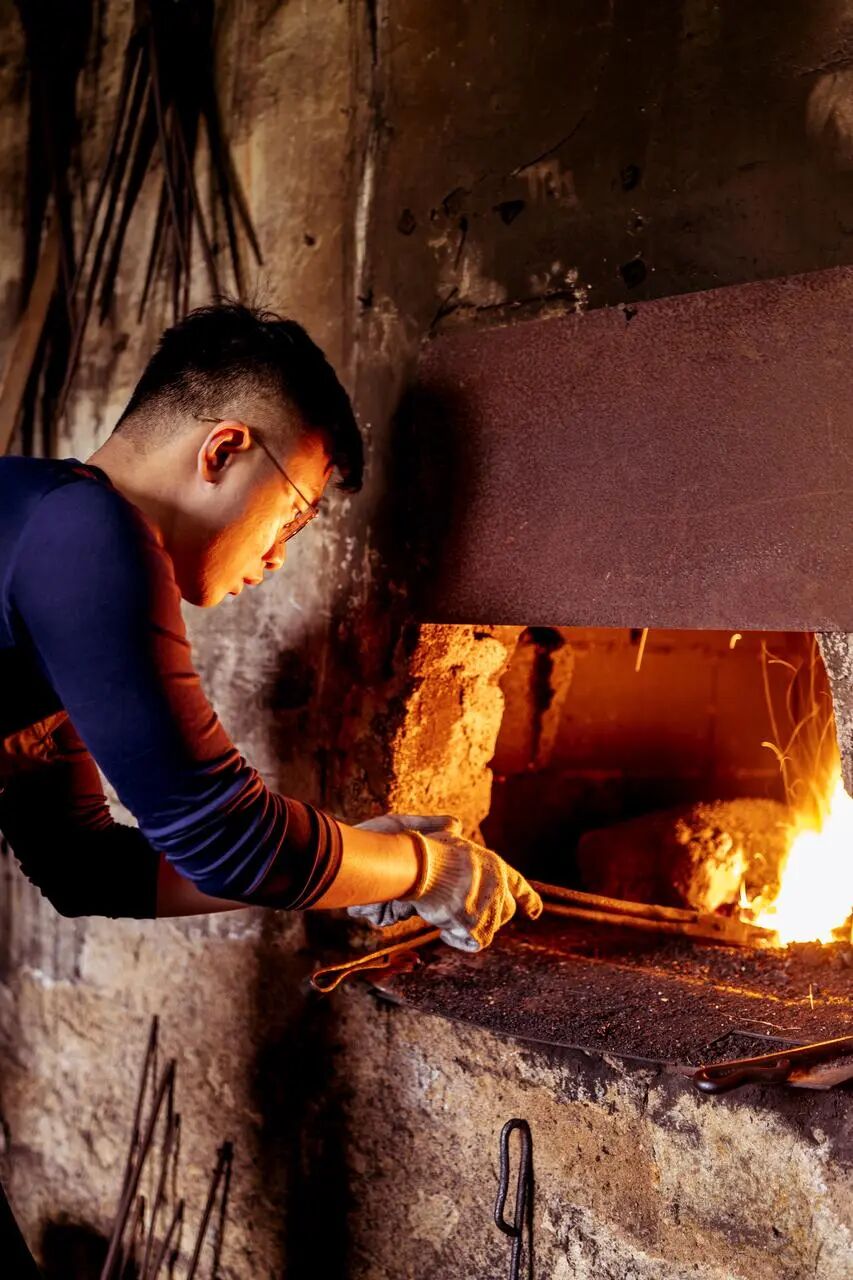30年刀口不崩不卷:「淬火」的“热处理”方式不借助任何机械,完全是肖超以及老师傅们凭着几十年的经验制成。