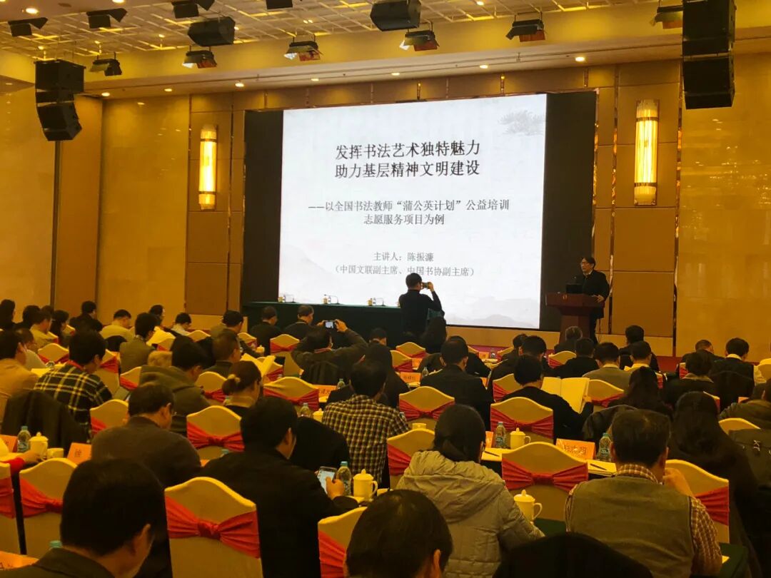 “蒲公英计划”公益培训志愿服务项目被中宣部、中央文明办等部门评为2018学雷锋志愿服务“四个100”先进典型——最佳志愿服务项目,陈振濂教授在会上发言