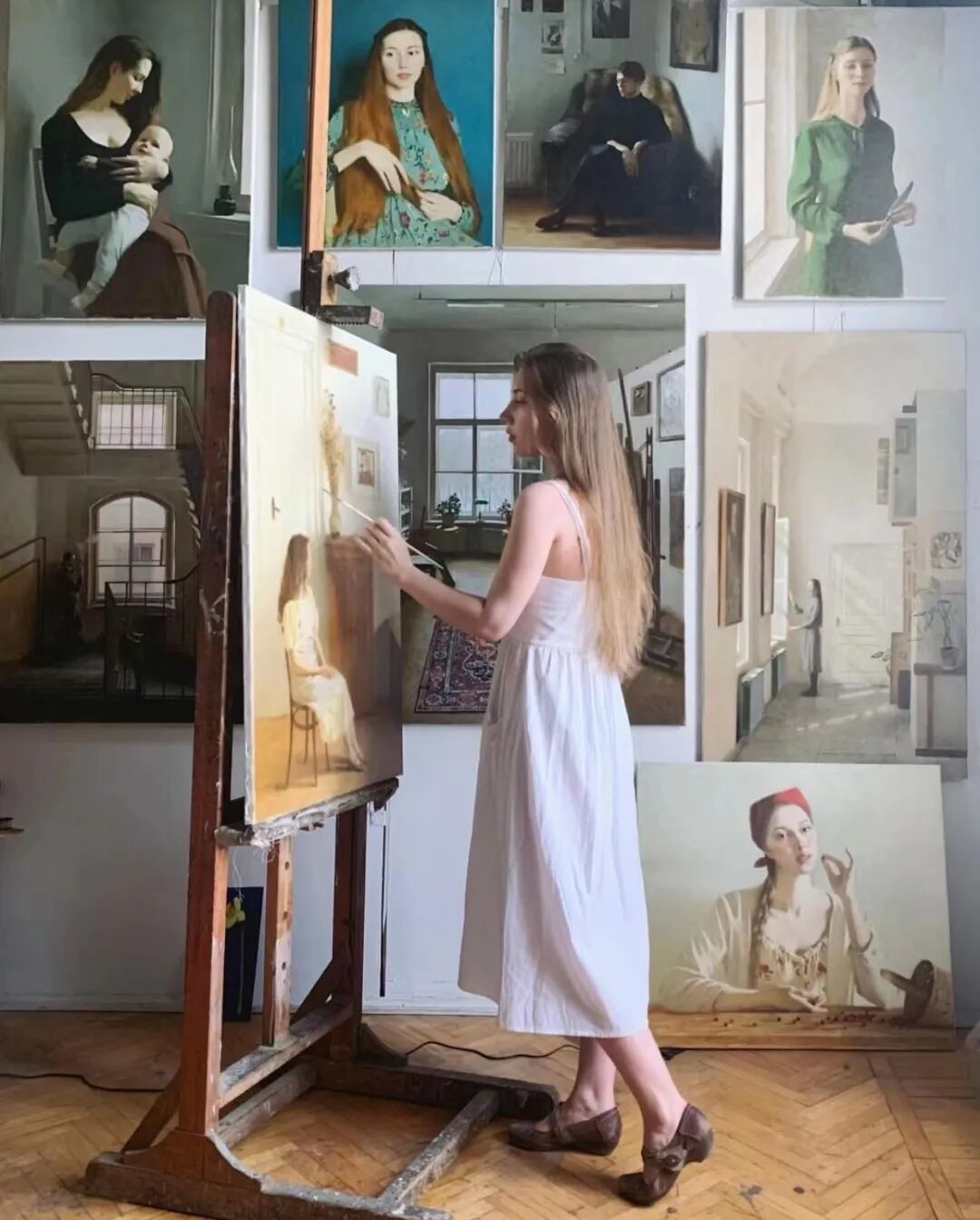 Ksenya Istomina凭借她柔软、爱梦幻的个性,将自己的性格融入到作品中,带着宁静的美好氛围。她的作品以自画像和肖像为主,也总是被出售挂在家中。