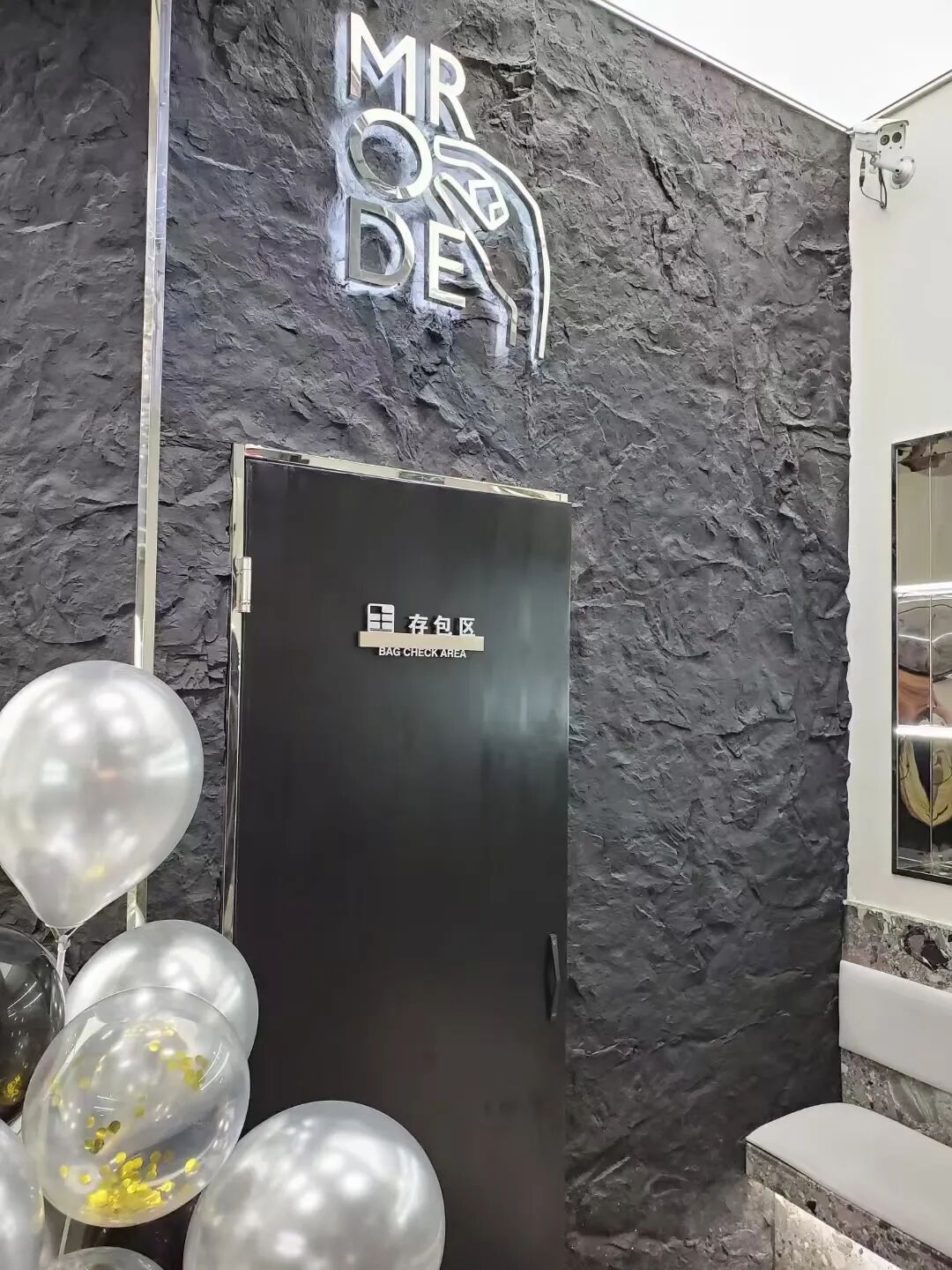 杭州时尚先生美发沙龙,墙面采用艾克石系列的劈开岩,单片尺寸是1200*3200mm,板厚8mm。