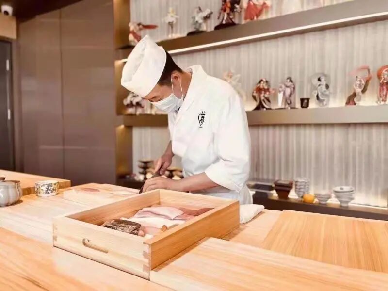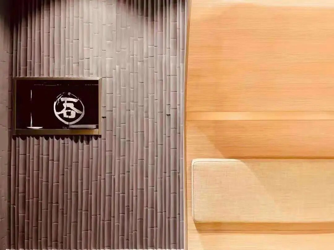 北京TUN SUSHI。墙面采用的是艾克石系列的竹模板,单片尺寸是800*2800mm,板厚8mm。
