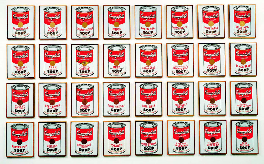 名人头像、美钞、可乐瓶、肥皂箱、罐头瓶,都是安迪·沃霍尔的创作素材。他将这些元素重复排列,变换颜色,就成了一幅艺术作品。这些图案简洁明朗,有一种独特的美感。