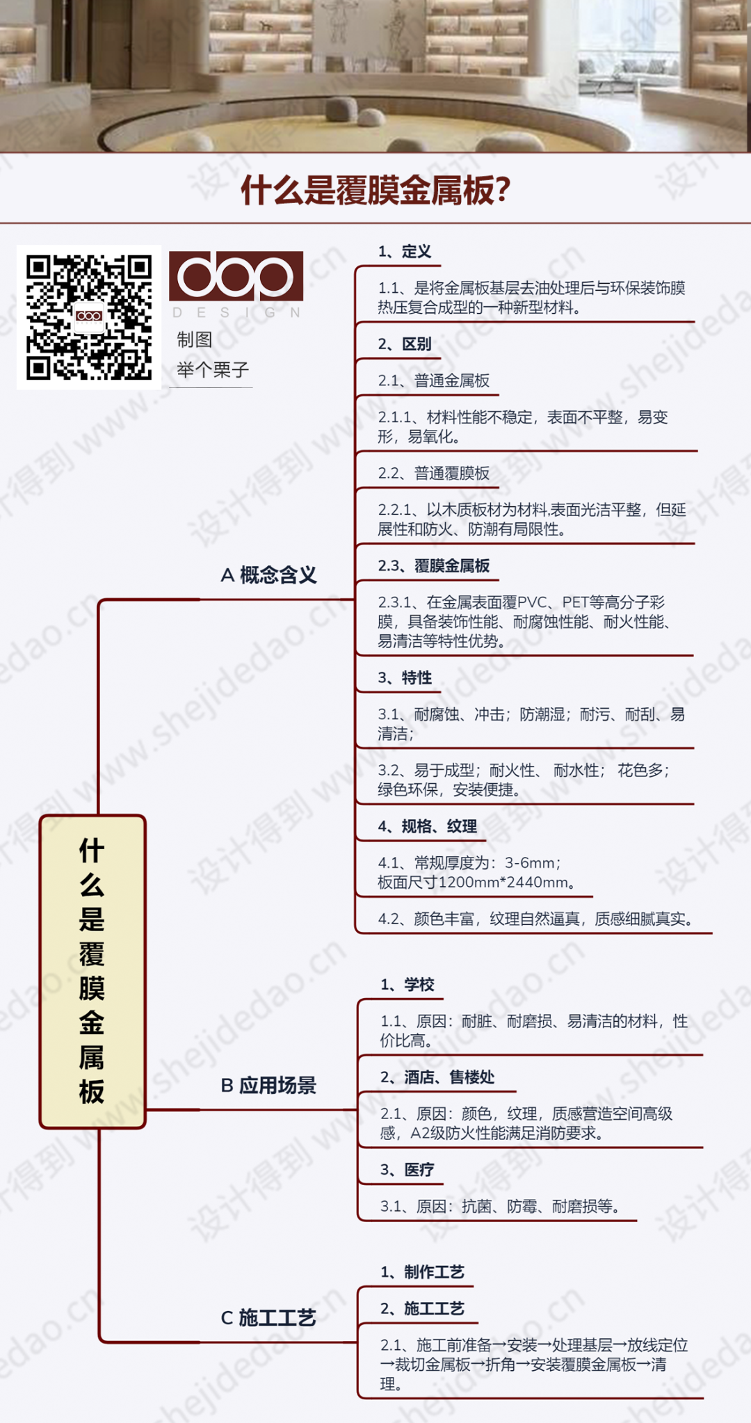 有关覆膜金属板的内容,就介绍到这里了,想要了解更多金属板材的设计要点,使用方式 ,工艺节点等知识,推荐关注dop设计出品的《室内设计实战指南(工艺&材料篇)》从工艺材料到机电设备,全面构建深化设计知识体系