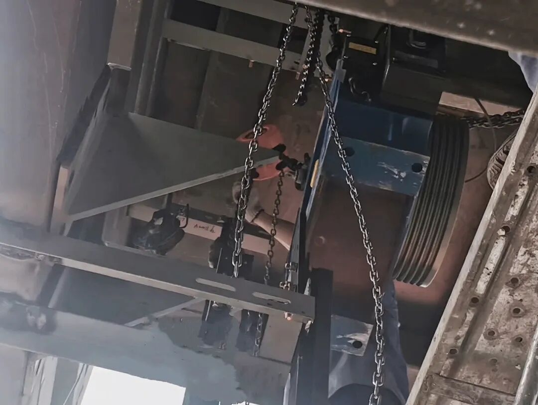 安装主机设备的流程为:安装承重梁→安装驱动主机底座→安装驱动主机→安装限速器→安装钢带轮。