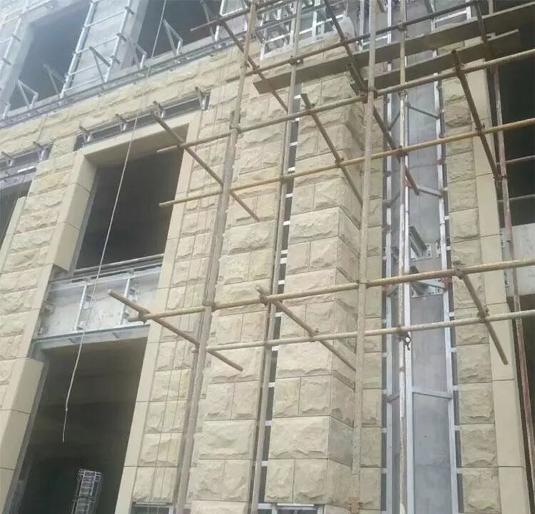 调整后及时加固,确保每一块砂岩板的安装成功率。