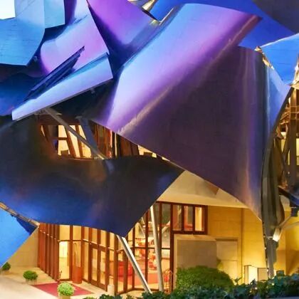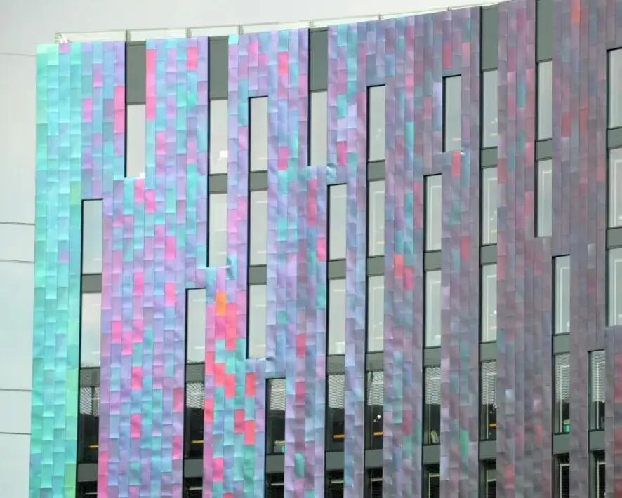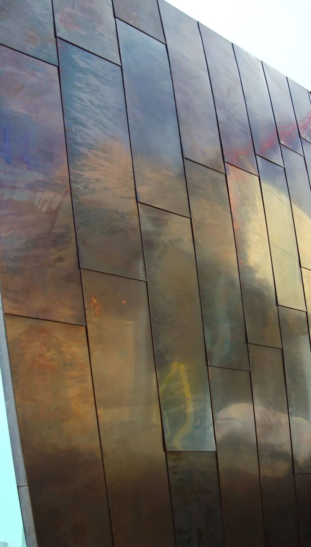 幻彩不锈钢:可任意切割、容易拼接,可根据设计效果任意拼接组合、任意弯曲、造型灵活,可用于空间的曲面造型。建筑室内外空间均可应用。