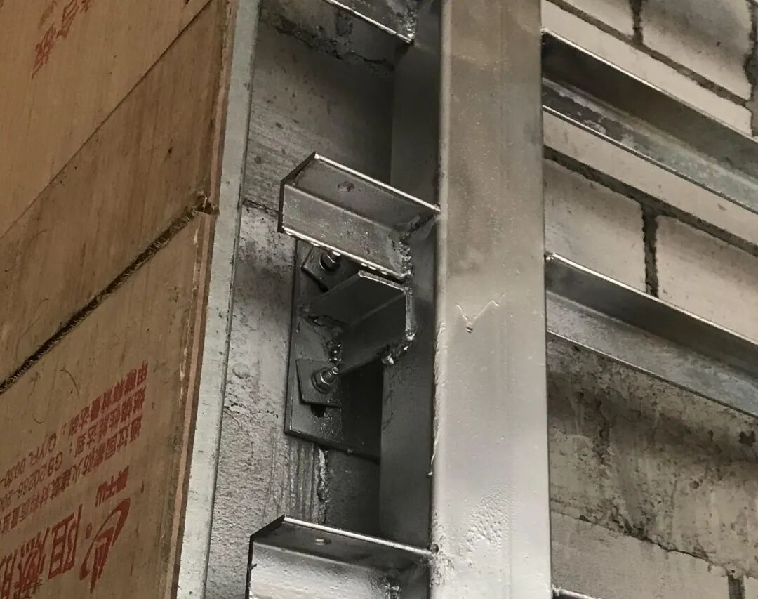 一般墙体没有预埋件采用膨胀螺栓固定连接件,有预埋件可采用连接件与墙面主体结构上的预埋件焊接,并在焊缝处做防锈处理。