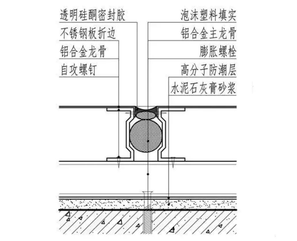 在没有做槽口承插的情况下,固定时要留缝,板与板之间留缝一般为10~20mm。为了遮挡螺钉及配件,缝隙中用密封胶等弹性材料做嵌缝处理。