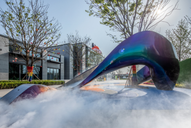 幻彩玻璃:主要受环境、光线、观赏角度的影响,呈现的颜色也随之改变。同时既反光也透光,其通透性使透过的景象也呈现出朦胧幻彩的效果,极具趣味性。