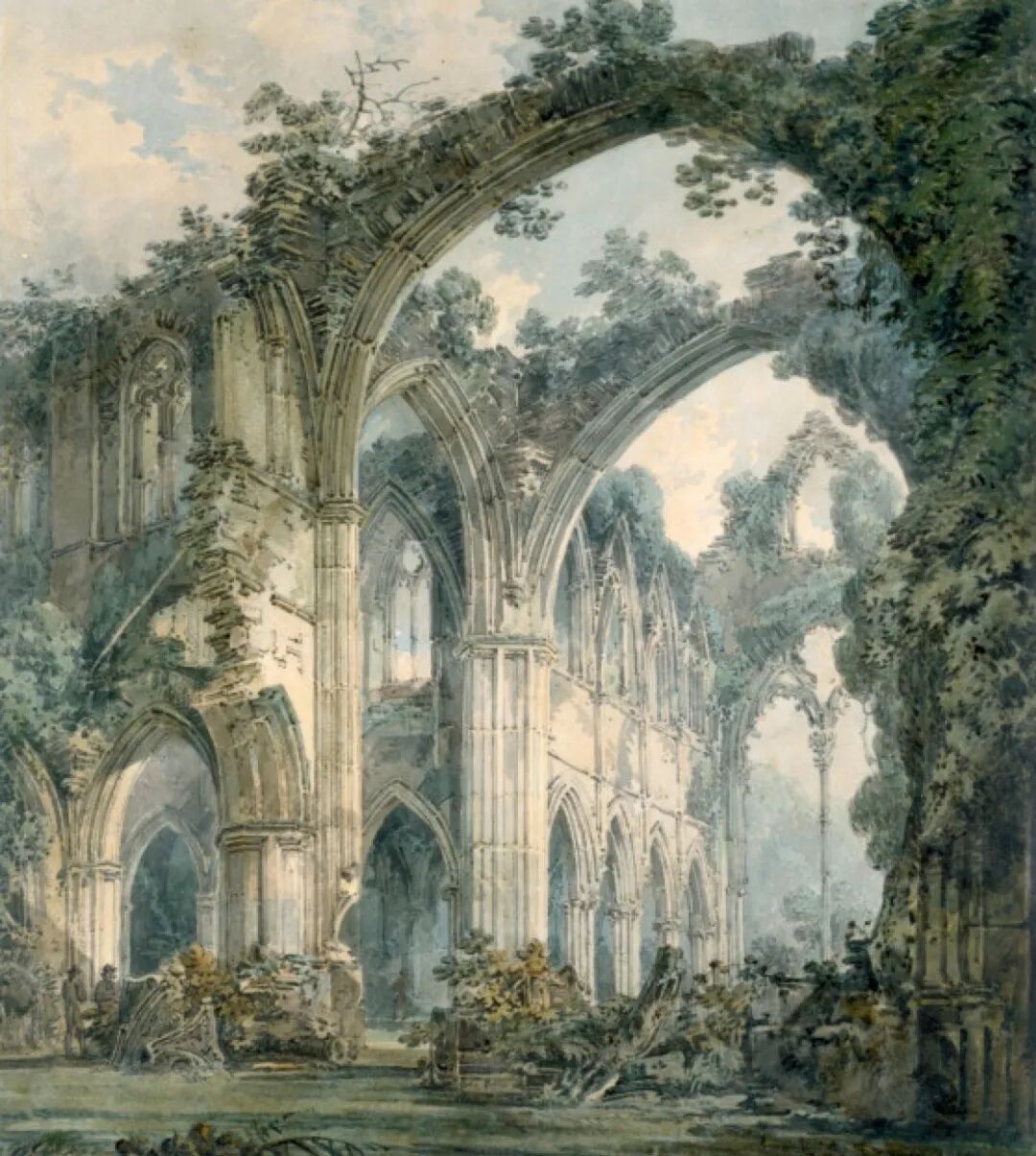 除了最极端的死亡,“生命力受阻后的迸发”也常常通过不那么极端的建筑方式体现,比如,通过废墟美学与崇高的结合表达。废墟一词用来表示被破坏(自然或人为),被遗弃或遗忘的事物。作为对传统规范和传统美学的挑战,废墟美学的崇高性中暗含着人们对于永恒时间的崇拜,并体现出瞬间与永恒,历史与自然,死亡与恐怖,陌生与神秘的属性。
