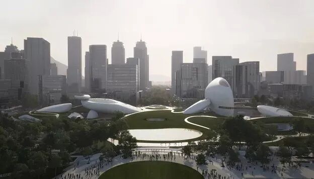 ▲深圳湾文化广场犹如散落在绿色大地上的石群 图源:网络
