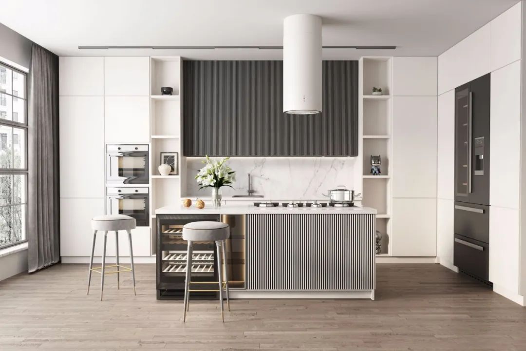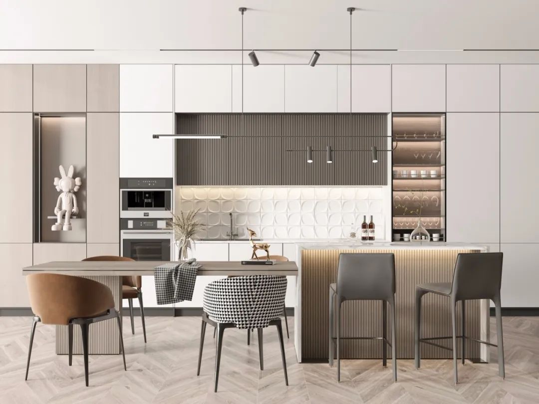 而且和当下比较流行的元素,比如木格栅、岩板、微水泥等等新兴的材料,也能完美的搭配和融合。具备极高的颜值和美观效果