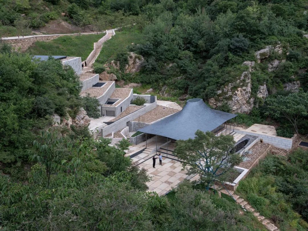 禅堂(Zen Hall)是金山岭上院(Upper Cloister in Aranya, Golden Mountain)的重要组成部分,项目由阿那亚投资开发,整体方案由大舍建筑事务所设计,大界智造联合和作结构建筑研究所完成的中国第一座也是最大一座使用全碳纤维屋面的展亭。