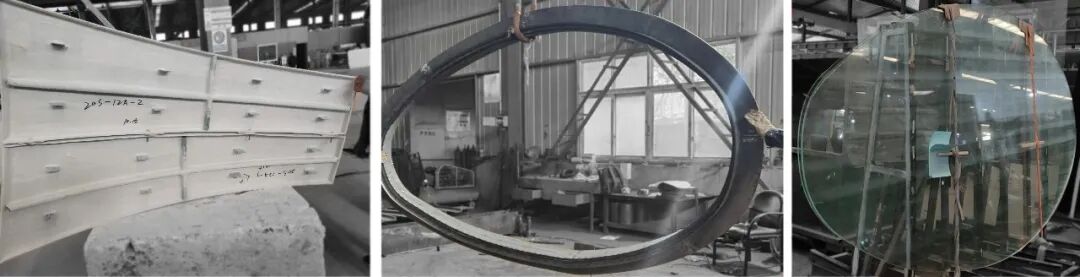 △由左至右:GRP双曲吊顶 、异形顶部圈梁、椭圆形天窗
