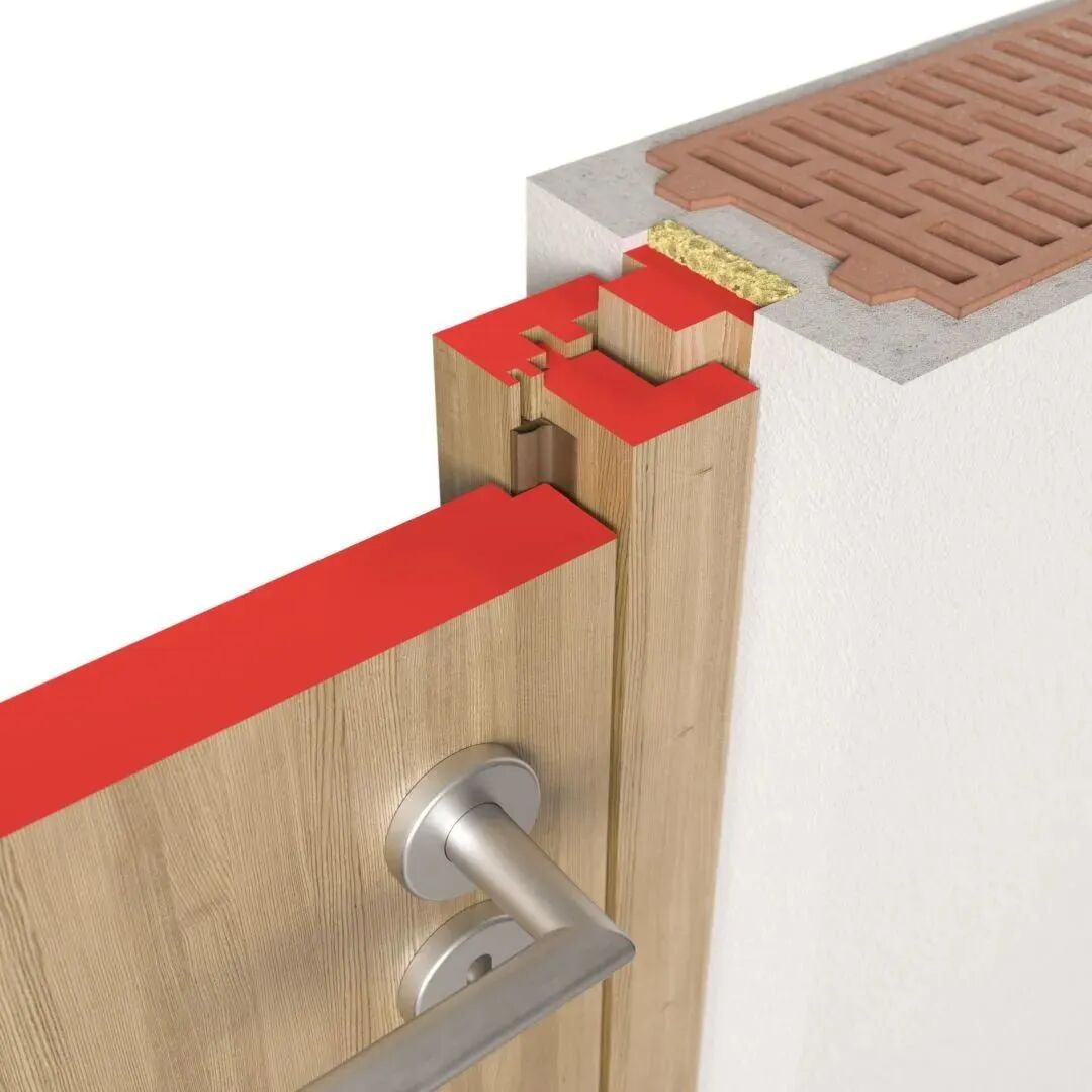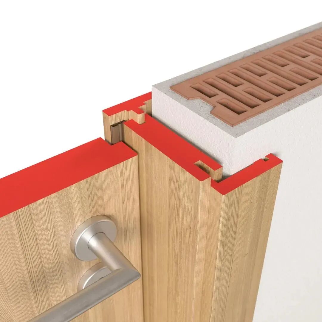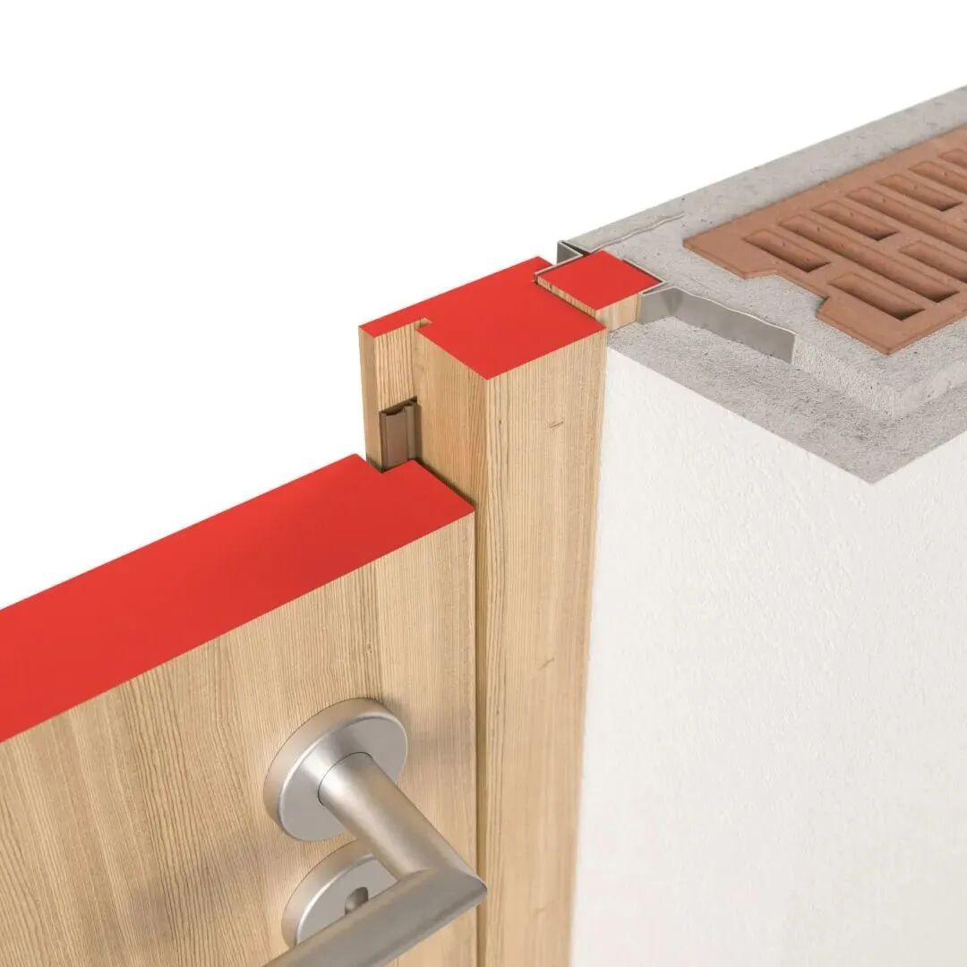 2)门套装好后,应三维水平垂直,垂直度允许公差 +2㎜,水平平直度公差允许 +1㎜;门套与墙体间结合应有固定螺钉(每延米不少于3个);门套宽度在 200㎜ 以上应加装固定铁片;门套与墙之间缝隙用发泡胶双面密封,发泡胶应涂匀,干后切割平整;