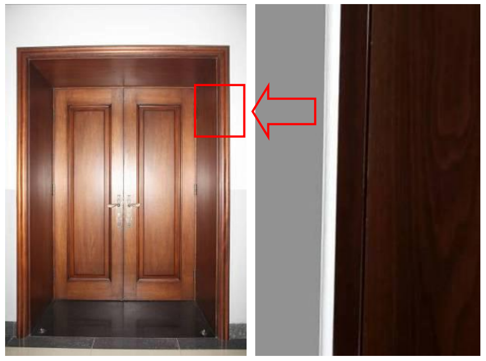 4)木门应平整、方正、无翘曲。符合公差要求(国家标准)。