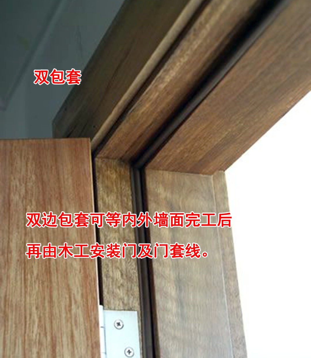 双边包套可等内外墙面完工后再由木工安装门及门套线。