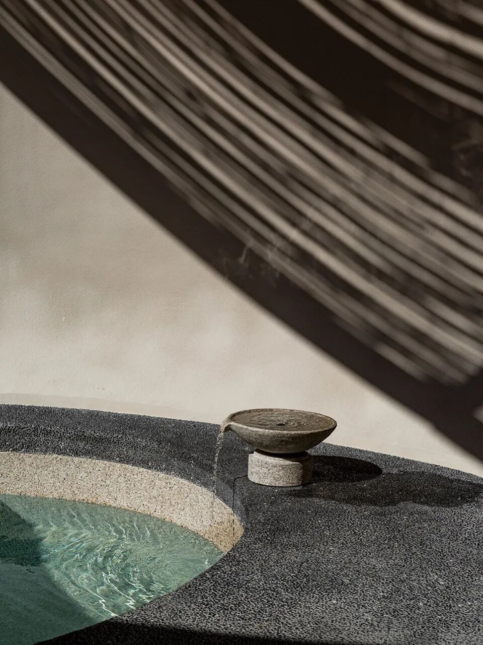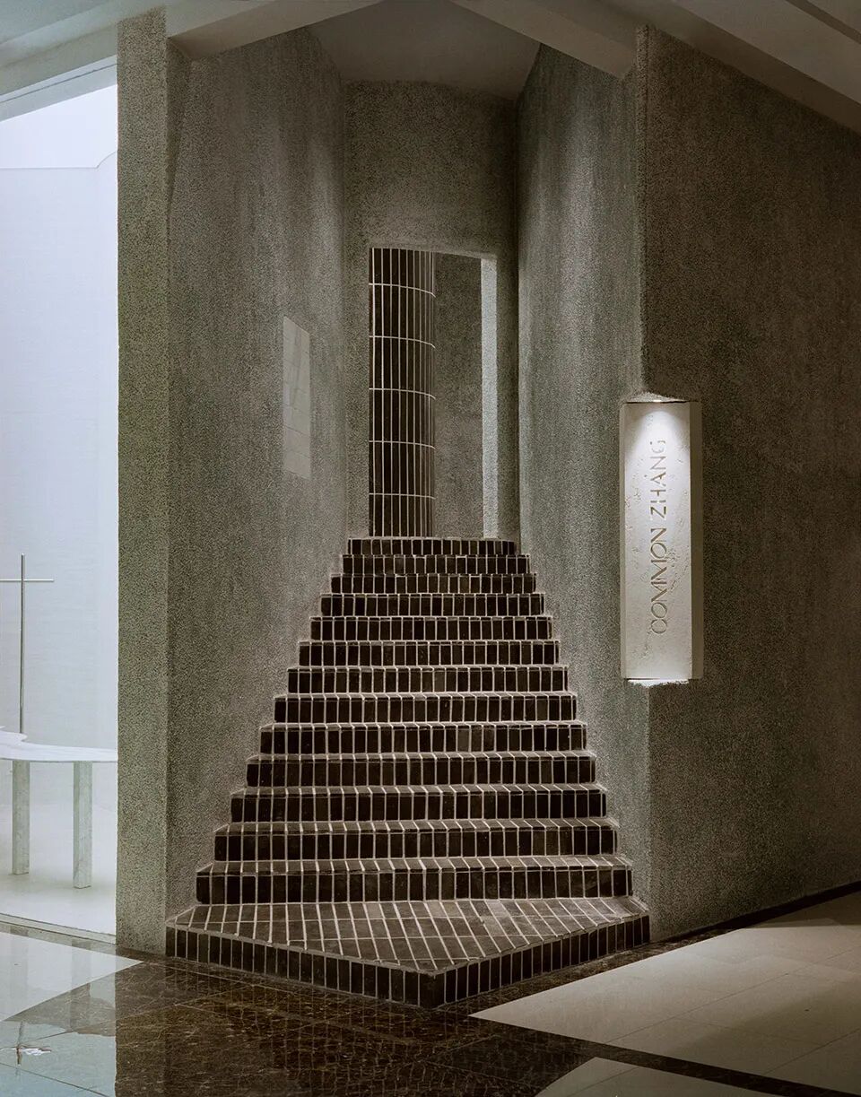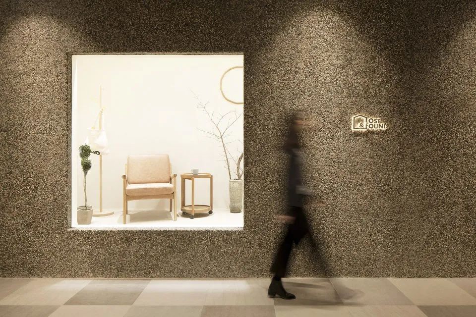 墙体是夹杂了鹅卵石的水磨石,地面材料是混合了灰色石粒的水洗石,两者虽然颜色相似,却有着截然不同的质感肌理。