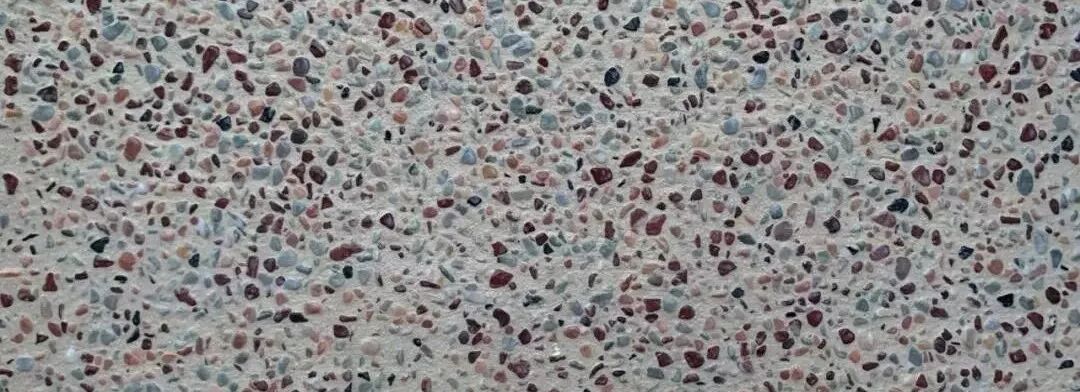 (2)人工机切石:粒径尖角较多,颜色单一,施工出来的水洗石表面饱满度不够,光泽较暗,观感较差。